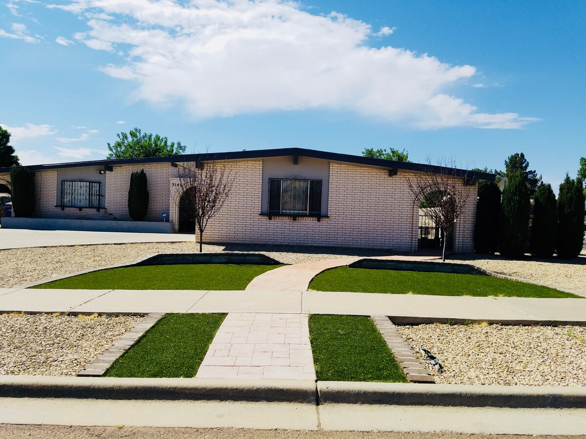 Doživite živopisnu meksičko-američku kulturu i njeno toplo gostoprimstvo u ovom ažuriranom, otvorenom domu. Bez obzira na to da li ste u gradu da radite, opustite se ili igrate, ovaj prostrani dom sa 3 BR/2 BA sa sobom za igru, 500+Mbps, frižiderom, apartmanom sa bračnim krevetom i gurmanskom kuhinjom ima sve. Opustite se pored vatrogasnog stola ili pergole u visećoj ležaljci u NOVOM dvorištu sa košarkaškim terenom i krastavcima! U blizini su I-10, aerodrom, UTEP/UMC/centar grada/FtBliss/HuecoTanks/Eats/parkovi/prodavnice. Radujemo se što ćemo vas ugostiti. Bienvenidos!
