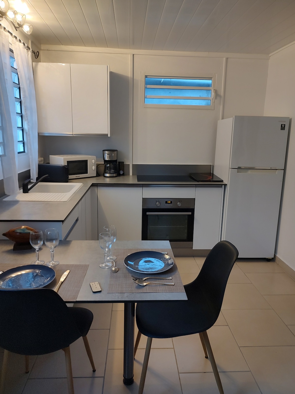 Stan (tip apartmana, uključujući spavaću sobu, susednu dnevnu sobu, terasu, unutrašnje dvorište, kupatilo sa kadom) nalazi se u umetničkoj vili sa pogledom na more. Hrana na otvorenom je potpuno opremljena. Široka terasa je veoma sunčana. Ovaj smeštaj je nezavisan od ostatka vile nalazi se u mirnom delu, na 15 minuta od Fort-de-Francea, na 10 minuta od prodavnica i pet minuta od najbliže plaže. Idealno za odmor i opuštanje, ali i za profesionalne boravke.