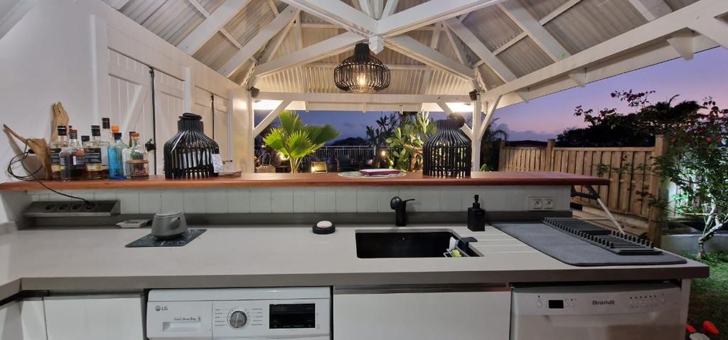 Prijatan stan na dnu vile: • Odlična lokacija, samo 10 minuta od aerodroma i tržnih centara. Njegova centralna pozicija je savršena za otkrivanje južnih plaža kao što je bujna priroda sjevera. • Čist, prostran i funkcionalan, sa nezavisnim ulazom za više privatnosti. • Velika terasa sa zelenom baštom, idealna za opuštanje i uživanje u tropskom okruženju. Savršena polazna tačka za istraživanje cijelog Martinika.