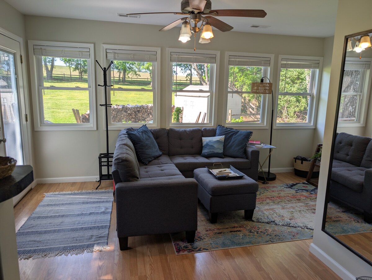 Surrounded by woods, this peaceful studio guesthouse provides a retreat-like setting close to our vibrant downtown. The private quarters feature granite countertops, fully-stocked kitchen, separate entrance, comfy bed, sun-filled rooms & a lovely, outdoor seating area to enjoy the quiet. *4 min to Kroger grocery & restaurants *6 min to Tennova North Hospital—perfect for travel nurses! *12 min to downtown *16 min to UT's Neyland Stadium & Thompson Boling Arena *1 hr to the Smoky Mountains