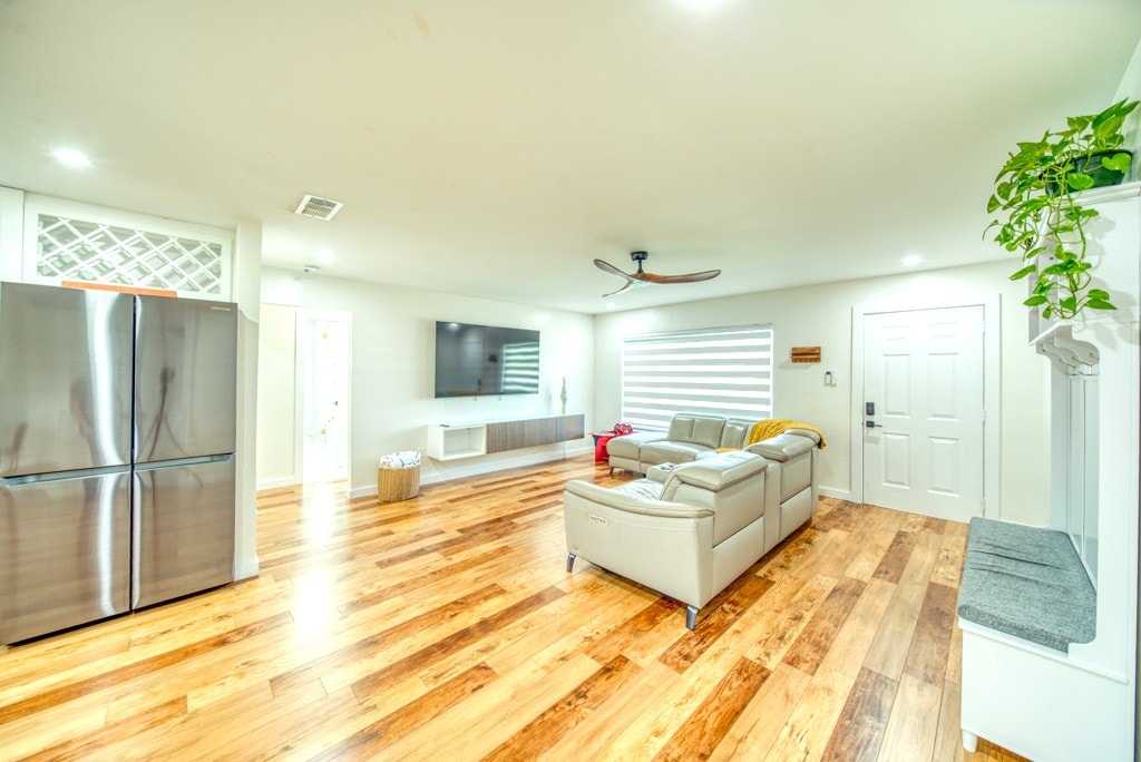 A renovated mid century modern house with natural peaceful views out of every window and slider. No detail spared, as it was going to be our forever home. Located on an ocean access canal, extremely safe, quaint and friendly neighborhood, just off 41. The backyard has a large shaded sitting area with a gas grill and fire pit. The dock hangs over the water with seating and swim ladder. 2 tandem kayaks, fishing rods & tackle, adult & children’s bicycles, beach chairs, and so much more.