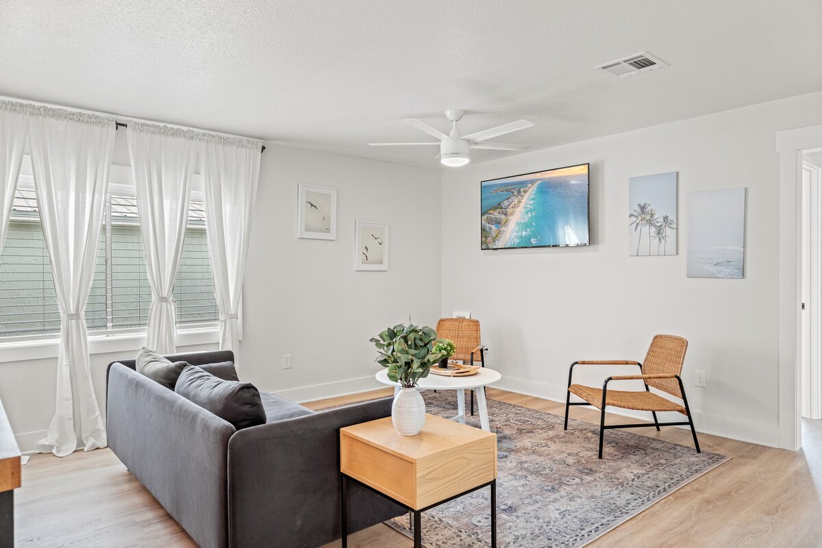Gulf Dunes 105 – uz zaliv i uz plažu Osetite ostrvsku atmosferu u ovom renoviranom apartmanu sa 1 spavaćom sobom i 1,5 kupatilom na ostrvu Okaloosa! Može da spava 6 osoba sa bračnim krevetom, krevetima na sprat u hodniku i kaučem na razvlačenje. Uživajte u privatnom balkonu sa pogledom na zaliv, direktnom pristupu plaži, bazenu i besplatnoj usluzi na plaži (mart–oktobar). Prošetajte do šetališta za hranu i zabavu. Savršeno za parove i male porodice. Grejani bazen 84–85 stepeni (nov–mar).