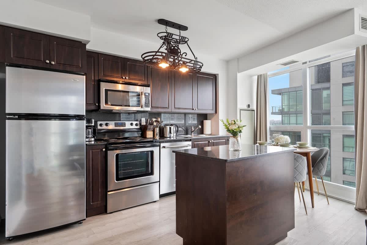 Uživajte u boravku u ovom elegantnom kondominijumu sa 1 spavaćom sobom i 1 kupatilom koji se nalazi u živopisnoj četvrti Fort Jork u Torontu. Savršena za najviše 4 gosta, jedinica ima bračni krevet, sofu u dnevnoj sobi, pametni TV od 55 inča, potpuno opremljenu kuhinju i privatni balkon s kojeg se pruža zadivljujući pogled na grad. Dizajniran za udobnost i praktičnost, ovaj kondominijum pruža savršen urbani odmor.