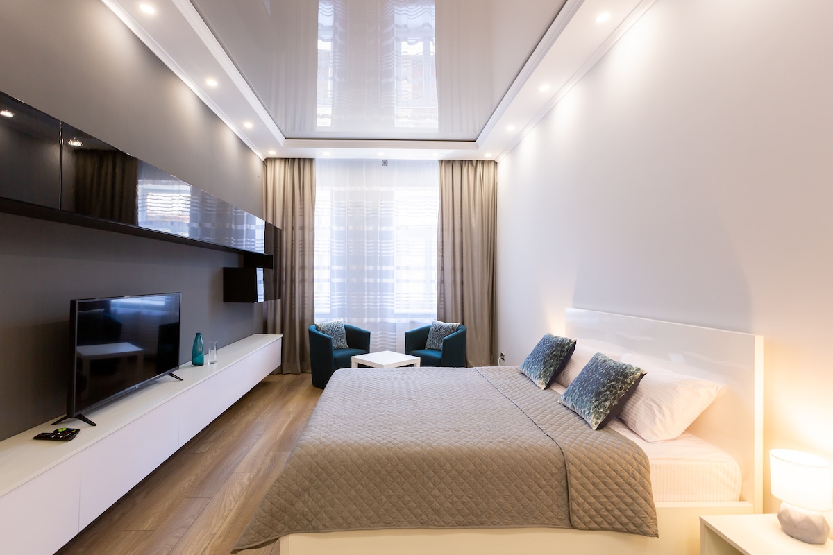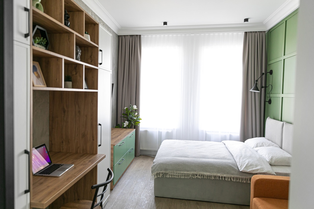 ✨Wi-Fi 24/7 optički, uvek radi! Elegantni stanovi u istorijskom centru Lavova. ✨Stan ima neprekidno napajanje BLUETTI EB70 1000W 716Wh Podno grijanje! Samo 650 metara i blizu ste operskog pozorišta. Dizajnerski enterijer spavaće sobe omogućiće vam da u potpunosti uživate u udobnom boravku. Stan ima potpuno opremljenu spavaću sobu sa velikim krevetom i ogledalom preko celog zida i potpuno opremljenu kuhinju. Besplatan parking u blizini kuće. Megogo TV.