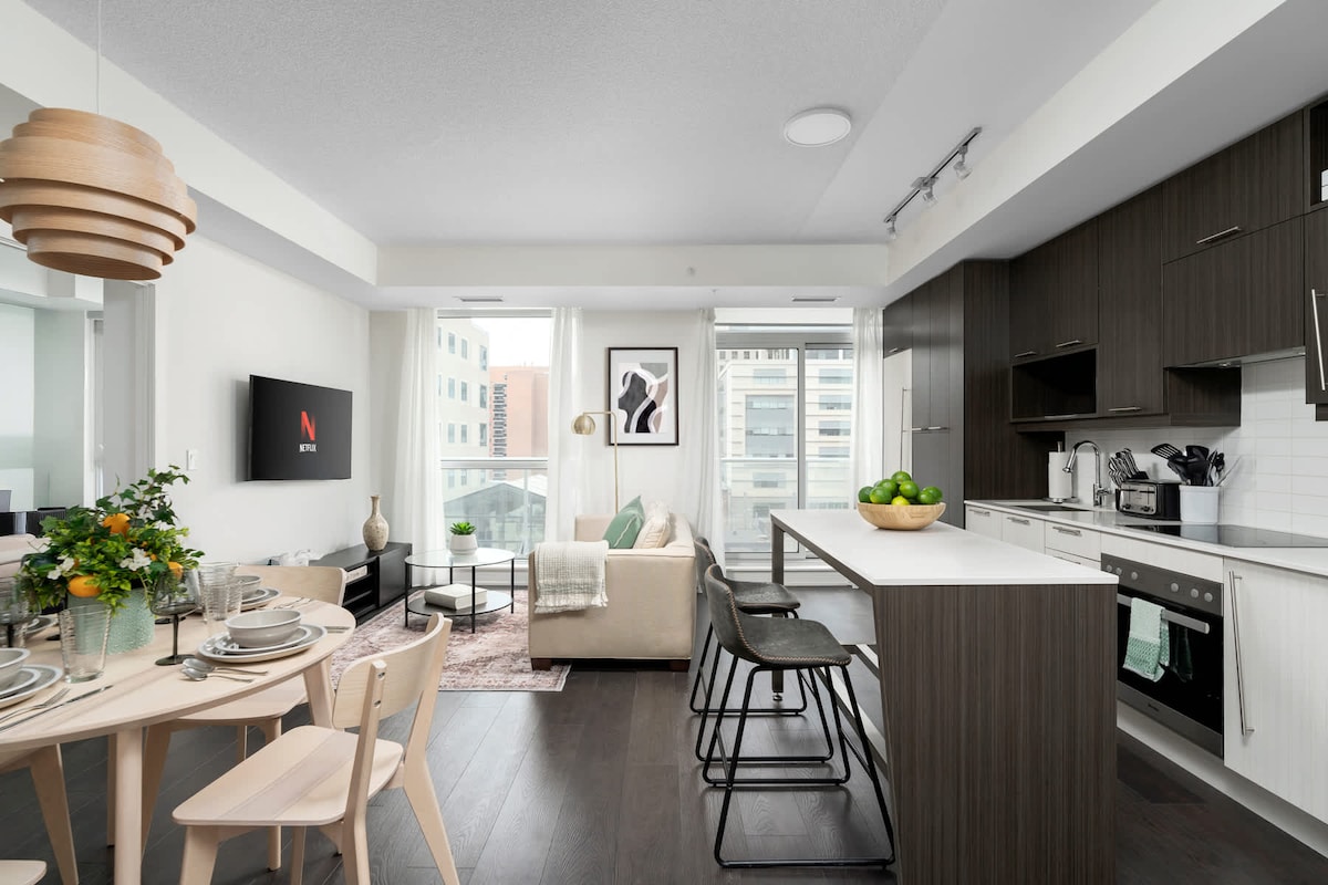 Welcome to our luxurious downtown sub-penthouse retreat. Designed with comfort and style in mind, this spacious home features two queen beds and a cozy sofa bed, making it ideal for families or groups. Enjoy cooking in the sleek, fully equipped kitchen, and unwind with modern amenities throughout. Whether you're visiting Toronto for business or leisure, this is the perfect home base for your stay.