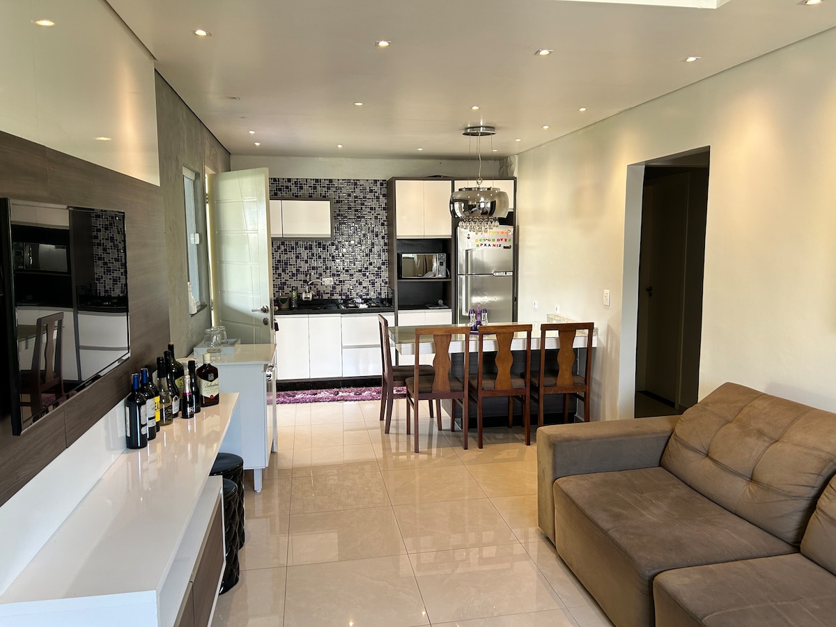 Na parte superior da casa encontrasse os quartos, sendo uma suite com sacada + 2 quartos e banheiro. Todos os cômodos possuem ar condicionado. Na parte inferior fica a garagem que abriga 2 carros + sala de TV com internet e lavabo. Sala de jantar, cozinha com excelentes utensilios domésticos, geladeira, microndas, fogão com forno elétrico e ar condicionado. Área Gourmet + churrasqueira com espetos