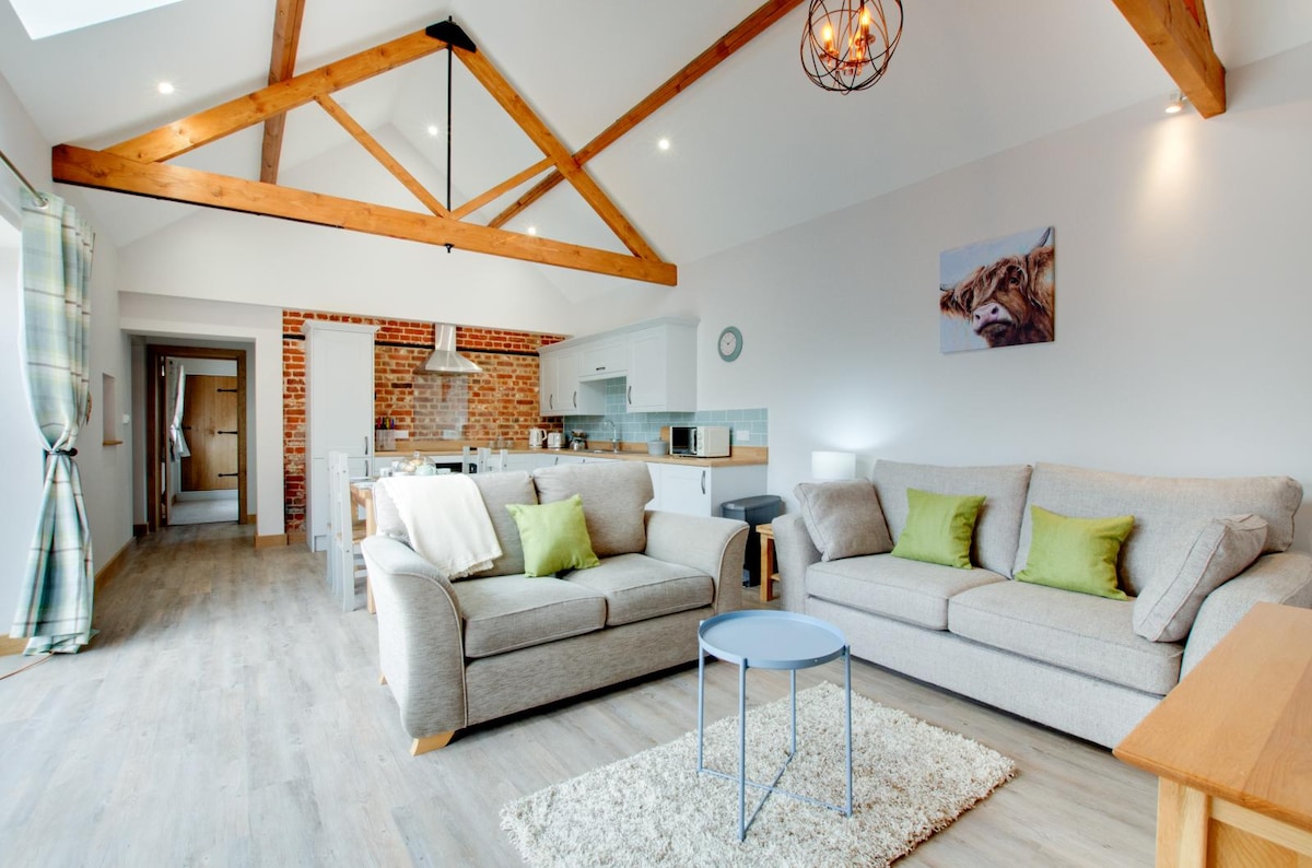 Monks Barn je elegantna jednokatna preuređena štala na istorijskom imanju Langley Abbey, okružena prelepim pejzažima u srcu Norfolk Broads-a. Savršena za porodične praznike i grupne izlete, nudi prostran dnevni boravak otvorenog tipa, sa tri kompleta vrata za terasu koja se otvaraju na zatvorenu centralnu baštu, idealnu za druženje i opuštenu večeru. Mirno, ali blizu vodenih puteva i plaža, prikladno za pse i savršeno za šetnje u prirodi i istraživanje neobičnih trgovačkih gradova.