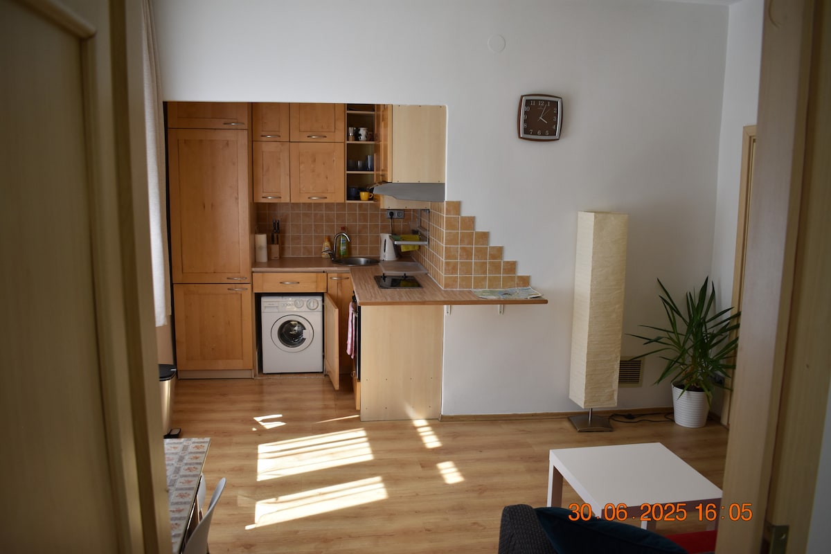 Niske sezonske cijene do juna! Uklanjajući moderne sadržaje sa starinskim stilovima, ovaj stan služi kao odlična baza za razgledanje Praga. Probudite se pod blagim svjetlom s krovnog prozora i sjednite na starinski namještaj dok uživate u istorijskoj zidnoj umjetnosti. Odmah iza ugla svih glavnih turističkih lokacija Praga, naš luksuzni, klimatizovani i sunčani stan će sigurno zadovoljiti sve vaše potrebe. Mešajući moderne sadržaje sa malo antikviteta, zaista ćete se osećati kao deo istorije ovog neverovatnog grada! Klima uređaj (klima-uređaj nije obavezan i dodatni CZK 100/ dan za struju) Aparat za espreso/kafu Digitalni dokument je bezbedan za pasoše, novac itd. Kablovska televizija sa dečijim, vestima, muzikom, sportom itd. Besplatan brzi internet (240 mbps) Deca mlađa od 3 godine borave besplatno Dječji krevetići su dostupni bez dodatnih troškova Kuhinja sa mikrotalasnom rernom, tosterom, kuhalom za vodu itd. Pristup mašini za pranje veša na zahtev I, naravno, apartman je pun svega ostalog što vam je potrebno da bi vam boravak bio što prijatniji. Ovaj stan je savršen za romantični odmor ili par sa decom. Stan je u blizini mnogih istorijskih znamenitosti u Pragu, što olakšava kretanje direktno sa praga. Provedite dan u živopisnom parku Karlovo Namesti prije nego što uskočite u obližnji javni prevoz i istražite ostatak grada. Spalena ulica se nalazi u samom srcu Praga. 100 metara od stanice metroa Narodni Trida, na kraju bloka je tramvajska stanica Lazarska. Srećom, vjerovatno vam neće biti potreban javni prevoz jer su sve glavne istorijske znamenitosti u blizini :-)