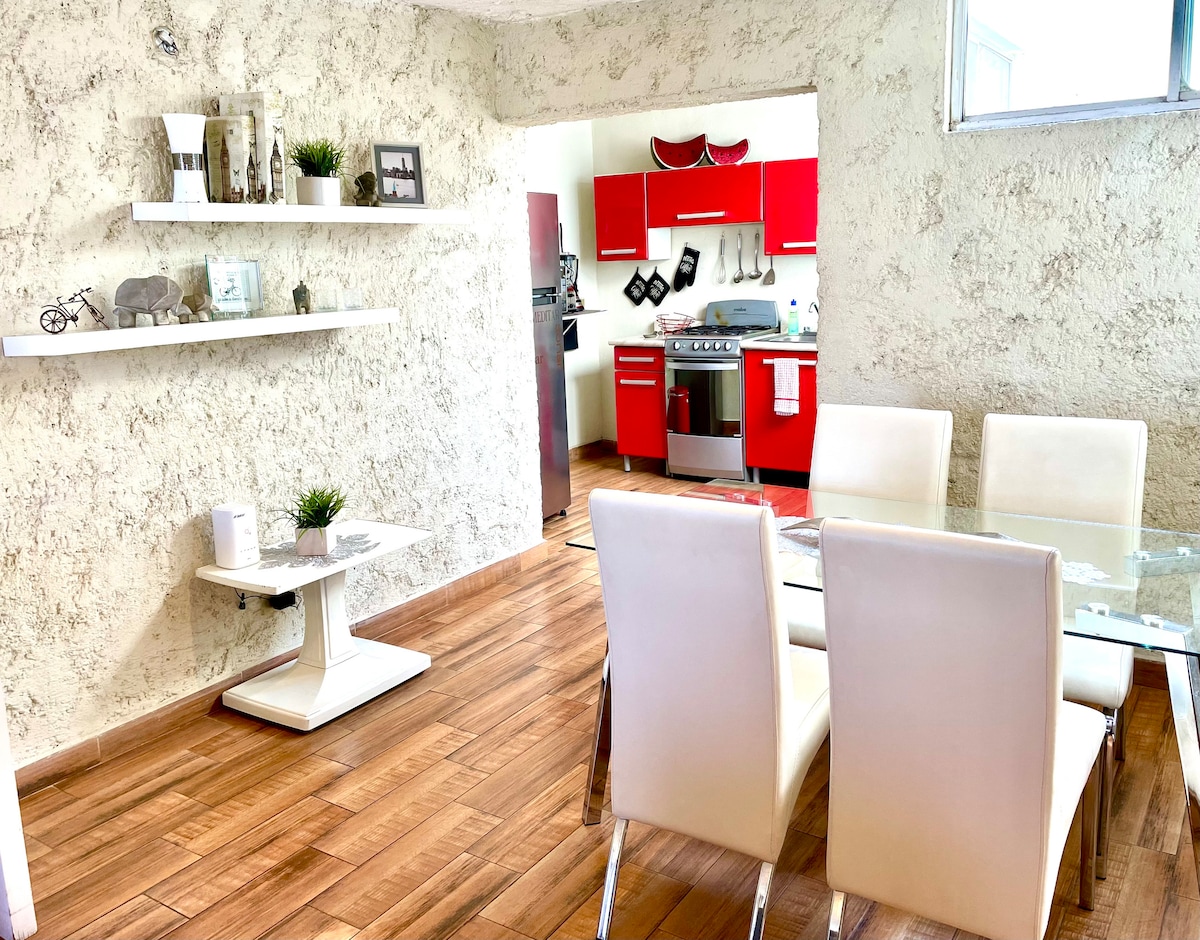 Disfruta de un departamento amplio y moderno, diseñado para ofrecerte comodidad y funcionalidad. Su ubicación atrás de la central camionera es clave: estarás conectado a las principales zonas y te permite entrar y salir de la ciudad con total facilidad y rapidez - Internet de alta velocidad para trabajar. - Smart TV con Alexa integrada. HBO Max y canales incluídos. - Full equipado: Cocina completa y espacios despejados. Un refugio moderno, espacioso y tecnológico para una estancia perfecta.