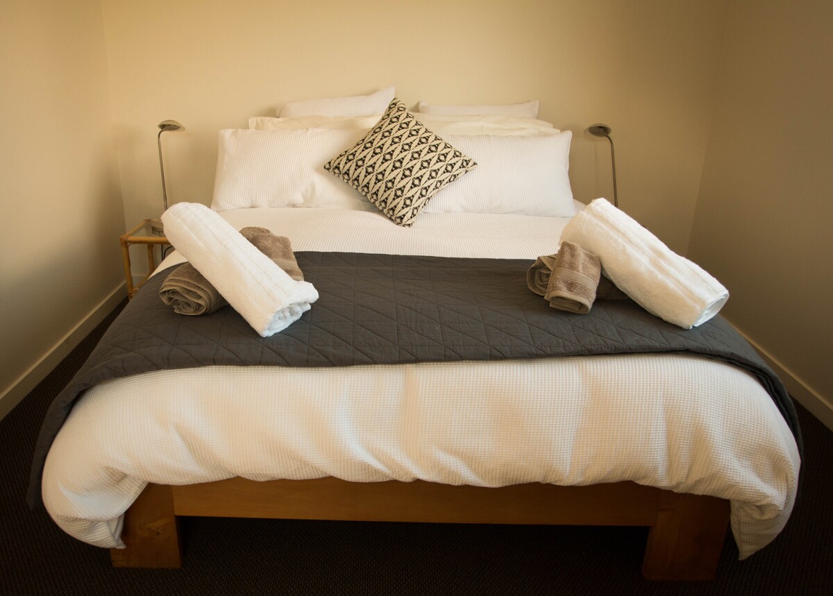 Dvokrevetni stan i velika bašta na otvorenom. 5 minuta hoda do grada Parking je besplatan na licu mesta Čaj, kafa i mlijeko se isporučuju 20 minuta vožnje od aerodroma Besplatan Wi-Fi i Chrome Cast Ovaj moderan, grijani i dvostruko ostakljen stan u prizemlju, savršeno je baza za uživanje i istraživanje Kvinstauna. Prostran je, ukusno uređen i ima udobnost doma. Savršeno za porodice/prijatelje/kolege koji žele lak pristup Kvinstaunu i njegovim sadržajima.