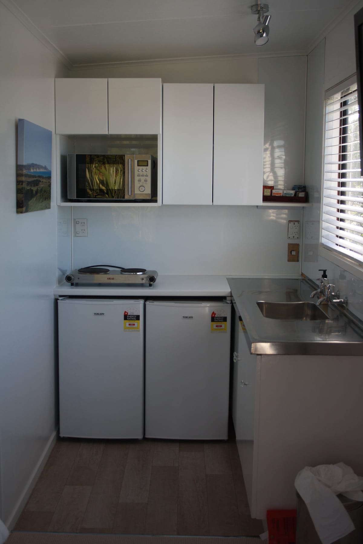 Samostalni studio (sa sopstvenim ulazom) uključuje čajnu kuhinju, kupatilo i radni prostor, kao i privatnu terasu za uživanje. Pouzdan starlink Wi-Fi u celom objektu. Garsonjera je povezana sa našom porodičnom kućom van mreže u bloku života, udaljenom oko 12 minuta vožnje od Vairoa. Pristup zajedničkoj teretani i objektima za pranje veša je dostupan. Dostupno je punjenje solarnih električnih vozila u zavisnosti od sunčeve svetlosti.
