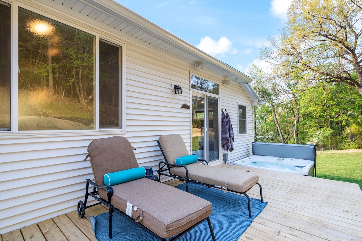 You will instantly relax in this stylish, pet-friendly home only 8 mins from I-70, exit 42. Under a canopy of trees find a beautifully landscaped yard with decks and two fire pit areas. Enjoy the well-apportioned kitchen with organic, fair trade coffee. Relax with 2 Roku TVs, games and puzzles, bathe with soaking salts and Turkish towels. For outdoor enthusiasts, pitch your tents. Sit by the wood-stove in the winter, or lay in a hammock when it’s warm. Welcome to The Crooked Cottage!