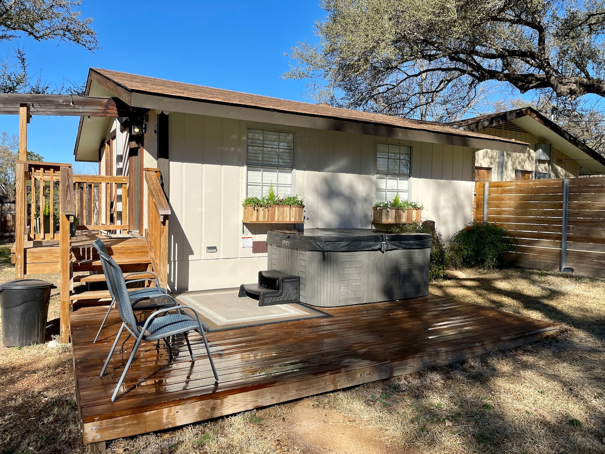 Pola milje hoda do glavne ulice! Apartman Bluebonnet Hideaway je veoma udobna i na osami. Apartman je novouređena prostrana spavaća soba sa nadsvođenim plafonom, rustikalnim plafonskim gredama i puno prirodnog svetla. Ažurirano kupatilo ima veliku staklenu tuš-kabinu i ormar. Dobro opremljen kafić ima mini frižider, aparat za kafu Keurig i mikrotalasnu rernu. Spolja je privatna terasa sa hidromasažnom kadom. Parking u sklopu objekta. Apartman je potpuno privatan, sa sopstvenim privatnim ulazom.