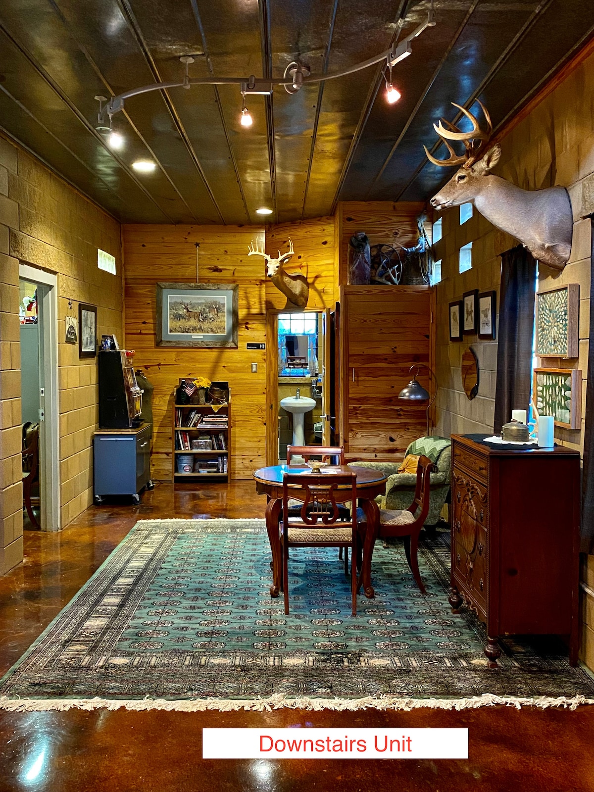 Sedam minuta do Glavne ulice, FBG. Neasfaltirani/privatni put/ZELENE POVRŠINE/KONJI/KRAVE VELIKI RM DIJELI ZID SA NAŠIM DOMOM. Pošto je to ZAJEDNIČKI ZID, to je BARGIN! Ne primaju se kućni ljubimci. PRIVATAN ulaz i PRIVATNO kupatilo. Namješten predimenzioniranim kožnim namještajem i 2 TEMPERPIEDIC kreveta. Rustikalni stil, antikviteti. Dizajn za DVA para/porodicu SM, na oko 800 kvadratnih metara. Ogroman je. Nema kuhinje, nema kuvanja. Kutak za kafu, frig, mikrotalasna pećnica, Culligan H2O Dva spoljna prostora, jedna terasa sa drvetom u hladovini i visećom ležaljkom. 2. ognjište u unutrašnjem dvorištu