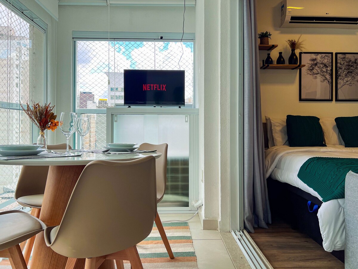 Novi i uređeni studio sa vrhunskom lokacijom u jednom od najtraženijih regiona u Sao Paulu. Pored Shopping Frei Caneca, nekoliko blokova od Av Paulista i Parque Augusta. Imamo OXXO pijacu u prizemlju. Stanice metroa Consolação i Higienópolis-Mack udaljene su nekoliko blokova. Studio je opremljen Smart TV-om sa 200 kablovskih kanala i NETFLIX-OM. (Mali) bazen na krovu sa pogledom na grad od 360 stepeni. Nudimo posteljinu i posteljinu za kupanje. Opremljena kuhinja.