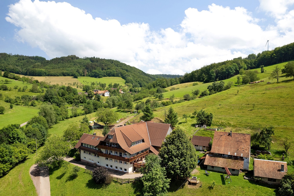 Für Gruppen ideal DAS ETWAS ANDERE HAUS...840m. ü. d. M Natur pur....Im Ort gibt es leider keine Bank oder Einkaufsmöglichkeiten... aber 3 km in Königsfeld bekommen Sie alles was Sie brauchen bis 20 Uhr, oder in St. Georgen ca. 5 Minuten von uns bis 22 Uhr. Ausflugsmöglichkeiten in die Schweiz, Bodensee, Österreich Triberg höchsten Wasserfälle Sehr schöne Touren für Motorräder oder zum wandern.