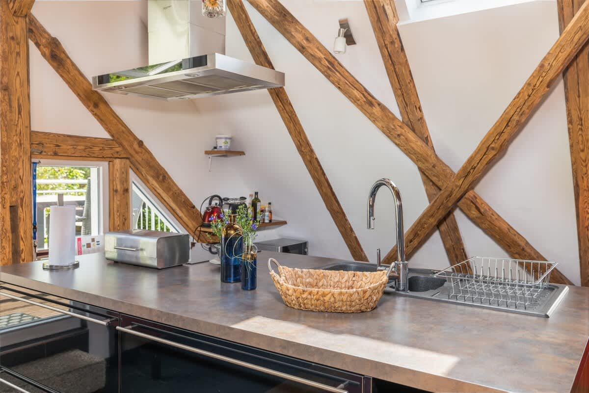 SAUNA, PEŠAČENJE I UPOZNAVANJE STRAZBURA Opustite se od svakodnevice – u ovom tihom apartmanu uređenom sa puno ljubavi. - Privatna sauna i fitnes uključeni - Pešačenje direktno iz kuće - 30 minuta do Strazbura / Evropa parka, idealno za kratka putovanja - Klimatski neutralna i stanica za e-punjenje - Velika, potpuno opremljena kuhinja. - Sve to u klimatizovanom apartmanu od 80 m² sa velikom krovnom terasom i panoramskim pogledom. Radujemo se vašem skorom dolasku!