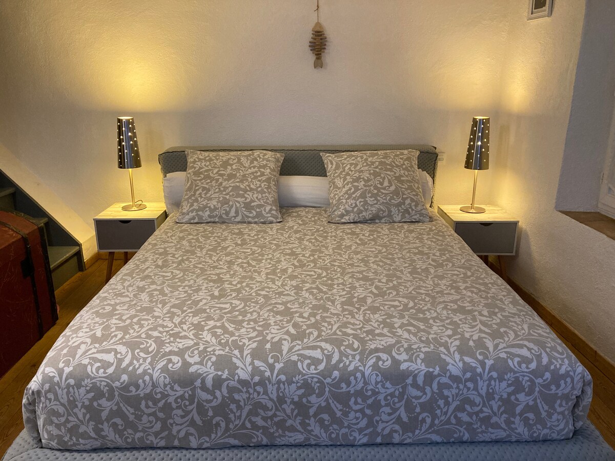 Nalazi se u srcu jezerskog grada Port Grimaud, prijatne potpuno renovirane kuće koja može da ugosti 7 ljudi uz korišćenje kauča na razvlačenje kao dodatnog kreveta. Ima 2 klimatizovane spavaće sobe (uključujući jednu sa krevetom za jednu osobu i 140 bračnih kreveta). Besplatan prevoz brodom vam omogućava da dođete do plaža ili pijačnog trga (prodavnice i restorani ) od 15. juna do 15. juna. Minimalni boravak od tri noćenja. Posteljina (čaršavi i peškiri) nije obezbijeđena