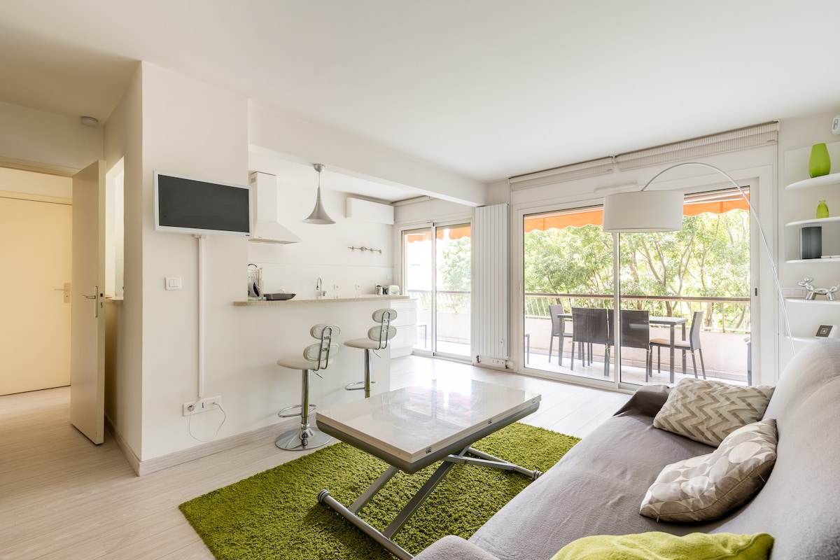 🌴 Divan stan sa privatnom baštom u Palm Biču, jednom od najekskluzivnijih i najtiših područja Kana. Nekoliko koraka od pješčanih plaža, Croisette i Port Pierre Canto. Savršeno za opuštanje nakon cjelodnevne kupovine u ulici Antibes, lokalnim pijacama i danima na plaži. Wi-Fi, Netflix, klima-uređaj i spoljni prostor sa prostorom za sjedenje kako biste uživali u suncu u potpunoj privatnosti.