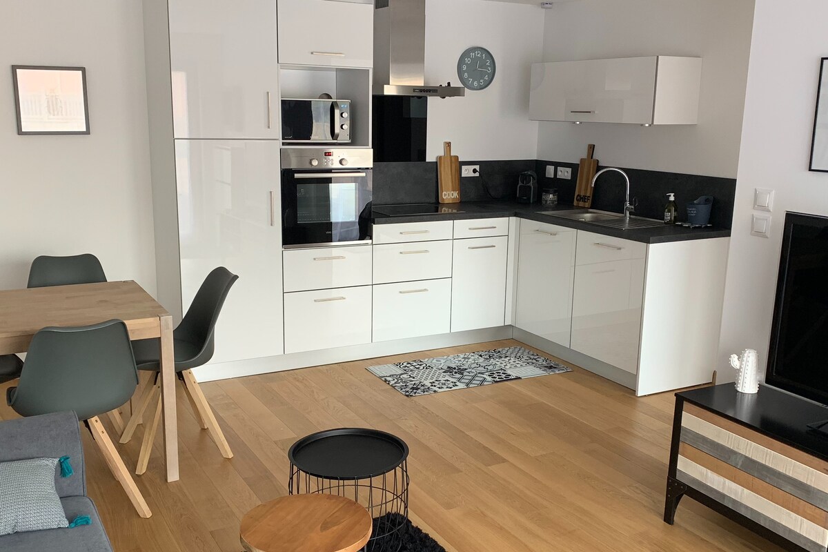 5 minuta od aerodroma, 7 minuta od železničke stanice, 15 minuta od Lila automobilom ili 5 minuta od autoputa... ali na selu! Predlažem vam prostranu i svetlu kuću od 135m² koja je u potpunosti renovirana sa mnogo šarma u veoma mirnoj ulici. Novouređena je i potpuno opremljena (brzi Wi-Fi). Sa kapacitetom od 7 osoba , ima 3 spavaće sobe sa krevetima napravljenim po dolasku. Sofa je kabriolet. Na raspolaganju su toaletna posteljina i suncobran. Privatni parking.