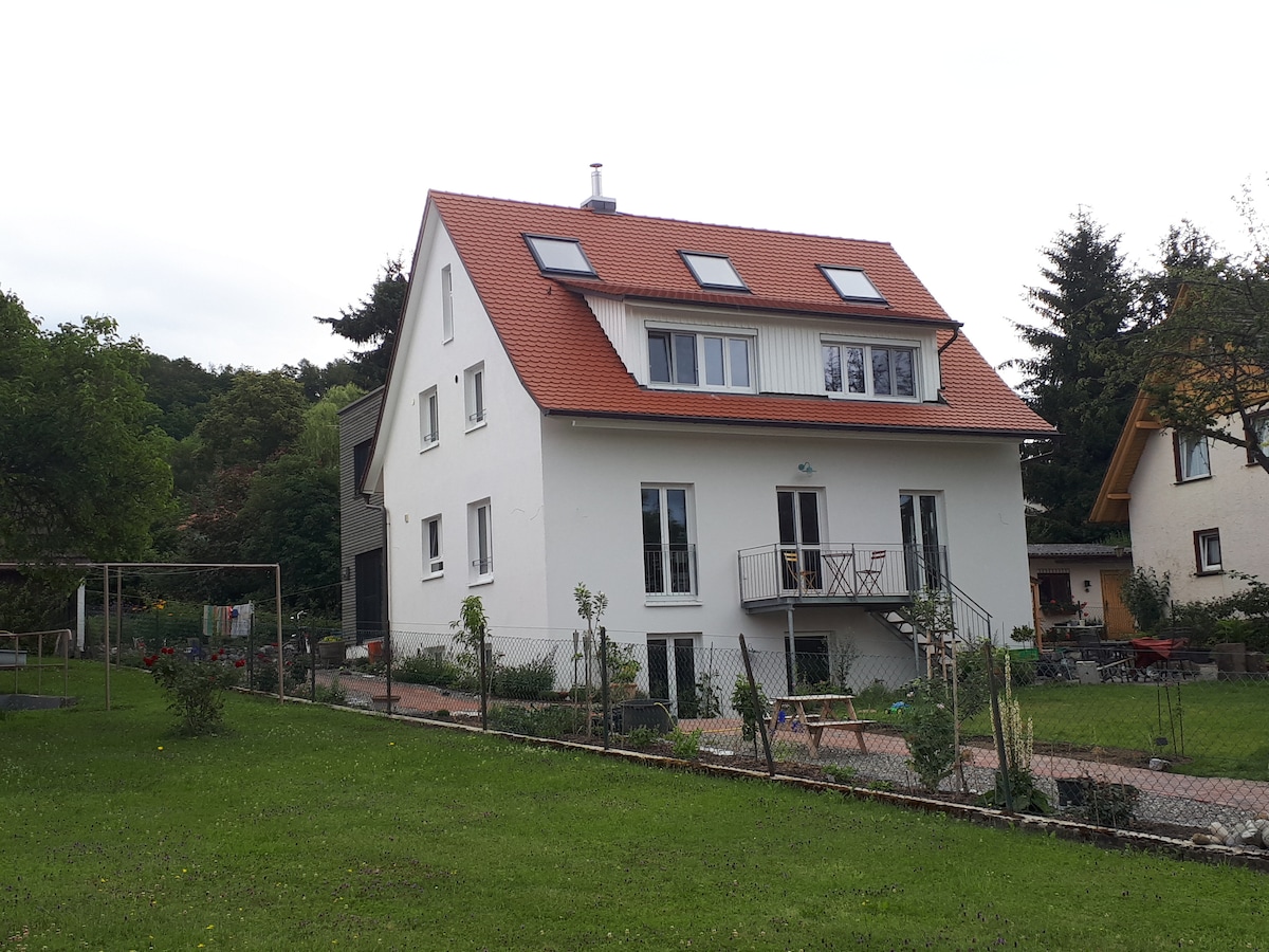 Na vrhu brda iznad doline streljaštva nalazi se naša kuća za odmor s pogledom na gradski pejzaž Ravensburga i Vajingartena. To je „gnijezdo lasta” – malo mjesto na mapi grada Ravensburga, koje priča posebnu priču. Sačuvali smo nekadašnju „kuću za pranje veša” u kojoj su pelene nekada bile oprane za tadašnji dječji dom i pustili da s ljubavlju zablista u novom sjaju. Održavan je poseban štih ove seoske kuće.