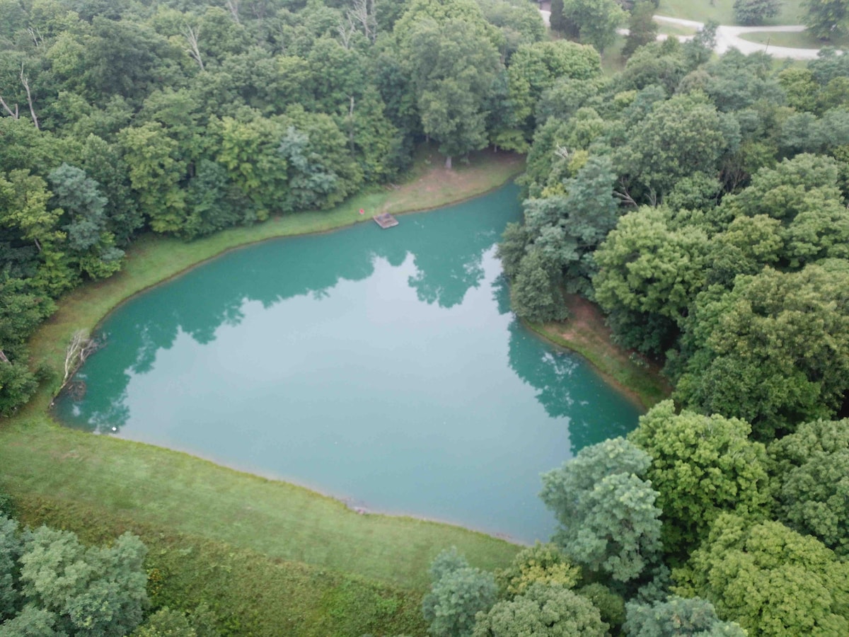 Iz hidromasažne kade, uživajte u seoskom vazduhu i miru u ovom prekrasnom (potpuno privatnom) od 48 hektara (potpuno privatne), dve spavaće sobe, dva kupatila koja se nalazi u centru između Arka i Muzeja stvaranja. Uživajte u šoljici kafe ili čaši vina oko veličanstvenog kamina s pogledom na livade. Uživajte u netaknutim jezerima (sa led fontanama) za pecanje i plivanje. Gledajte jelena i ćurku kako lutaju imanjem. Pješačite stazama koje uključuju frizbi teren za golf dizajniran za pejzaž.