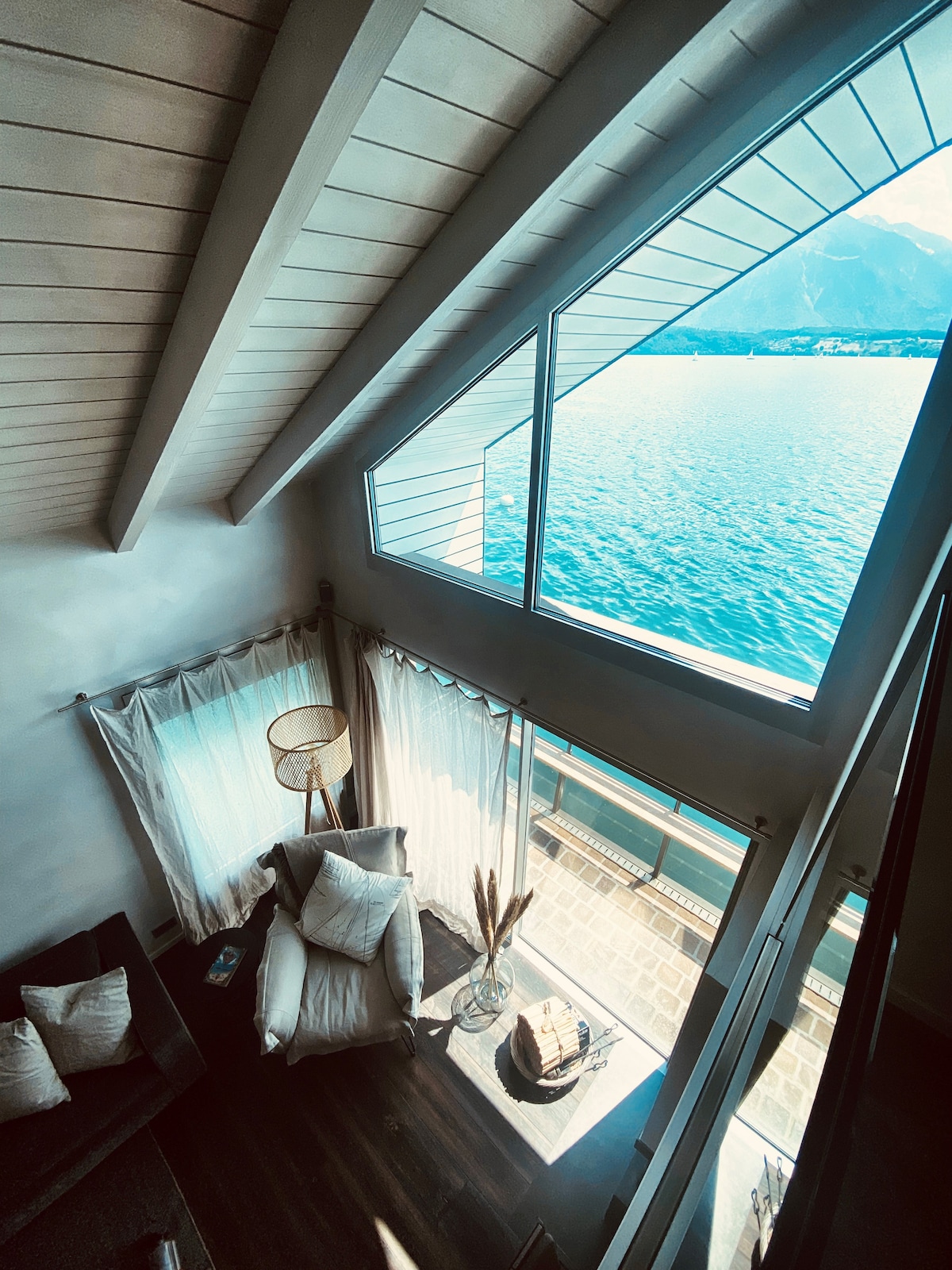 Privatni apartman na poslednjem spratu vile Wilen, u kojoj živi vlasnik, direktno na jezeru Sarnen, jedinstveni alpski pogledi, izlazak sunca Prostrana spavaća soba sa kućnim bioskopom, panoramskim dnevnim boravkom, velikom kuhinjom i kupatilom (sve privatne prostorije). Za 3–5 gostiju, jedan sprat ispod nalazi se dodatna privatna spavaća soba sa kupatilom (pristup liftom – zajednički prostor). Pristup jezeru i bašti, SUP daskama, besplatan parking i Wi-Fi. Deca su dobrodošla, samo mali psi. Najpopularniji Airbnb u Švajcarskoj. Do većine istaknutih mesta stiže se u roku od 1 sata.