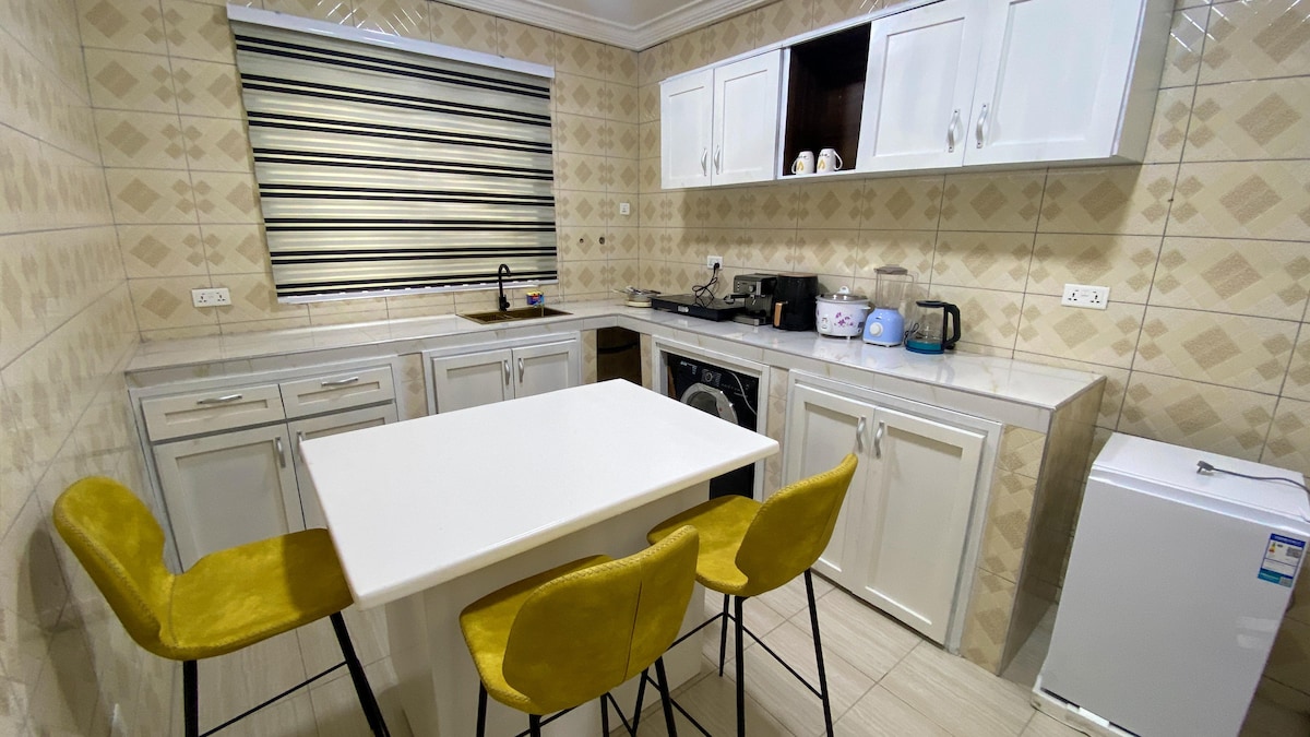 Refresh your soul in this vintage apartment, located at a strategic position connecting all the major road networks, making it easy to beat the rush hour traffic. It is about 30 mins drive from the city centre. Exclusively furnished, gated with a 24/7 personnel at post, best bet for peace and sefety. The SPAR Supermarket, Cash Point(ATM), Forex Bureau, Spa/Saloon, Pubs, Groceries and Eateries just 5 minutes' walking distance.The Accra beaches and tourist attractions are about 30 minutes' drive.