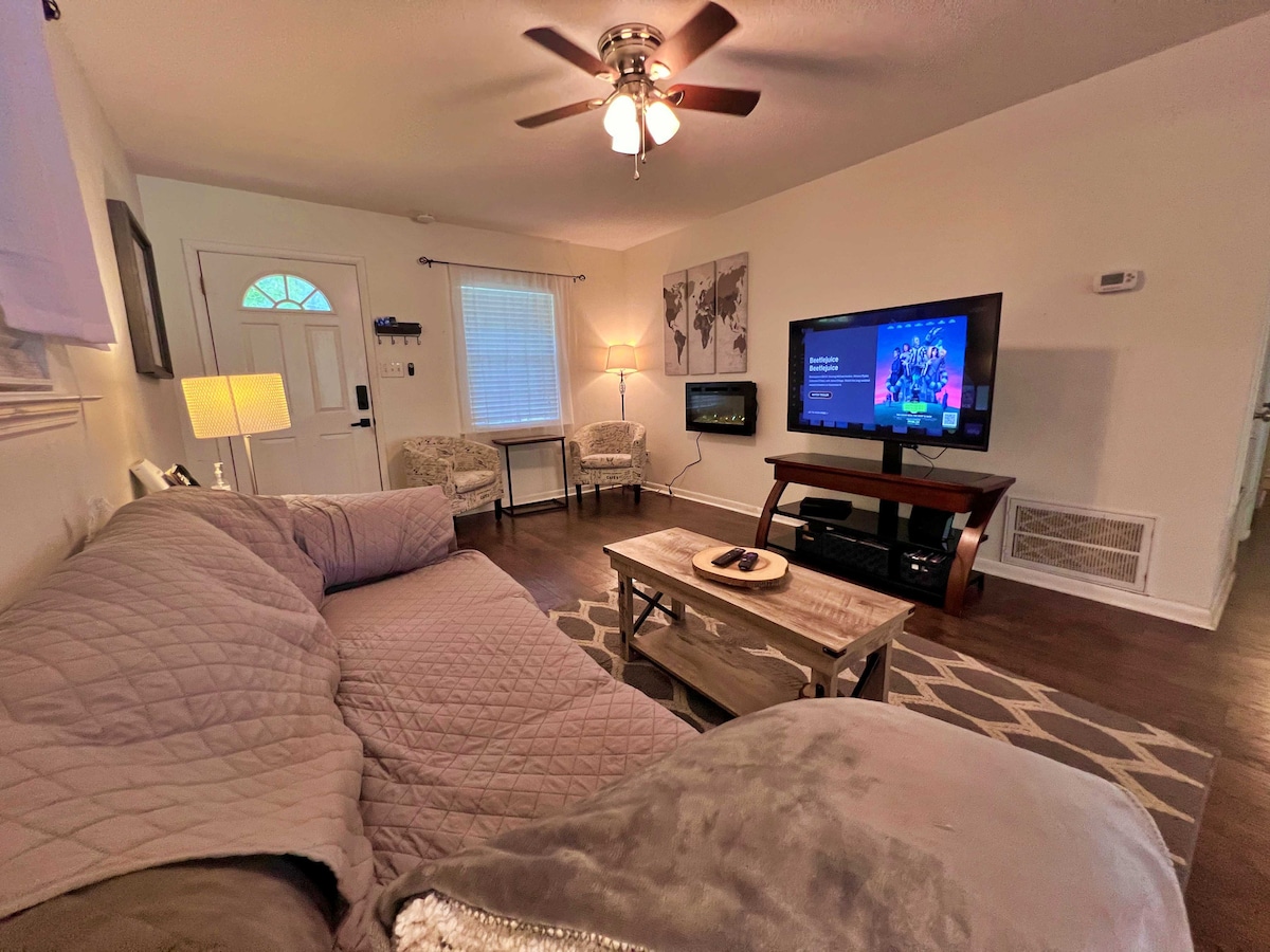 Otkrijte naš novouređeni 2BR dom, koji se nalazi samo 7 minuta od centra grada i 5 minuta od FSU-a, sa besplatnim parkingom za do 3 automobila. Obezbeđena je osnovna oprema i besplatna kafa/voda. Unutra uživajte u modernom uređenju i sadržajima kao što su kamin i TV od 55 inča. Sa 1 bračnim krevetom po sobi i 2 kauča, ovaj dom može da primi 4 gosta. Izađite na terasu prekrivenu kišobranom sa manjim trpezarijskim stolom i stolicama, savršenim za uživanje u jutarnjoj kafi ili večernjem koktelu. Rezervišite odmah da biste osigurali datume!