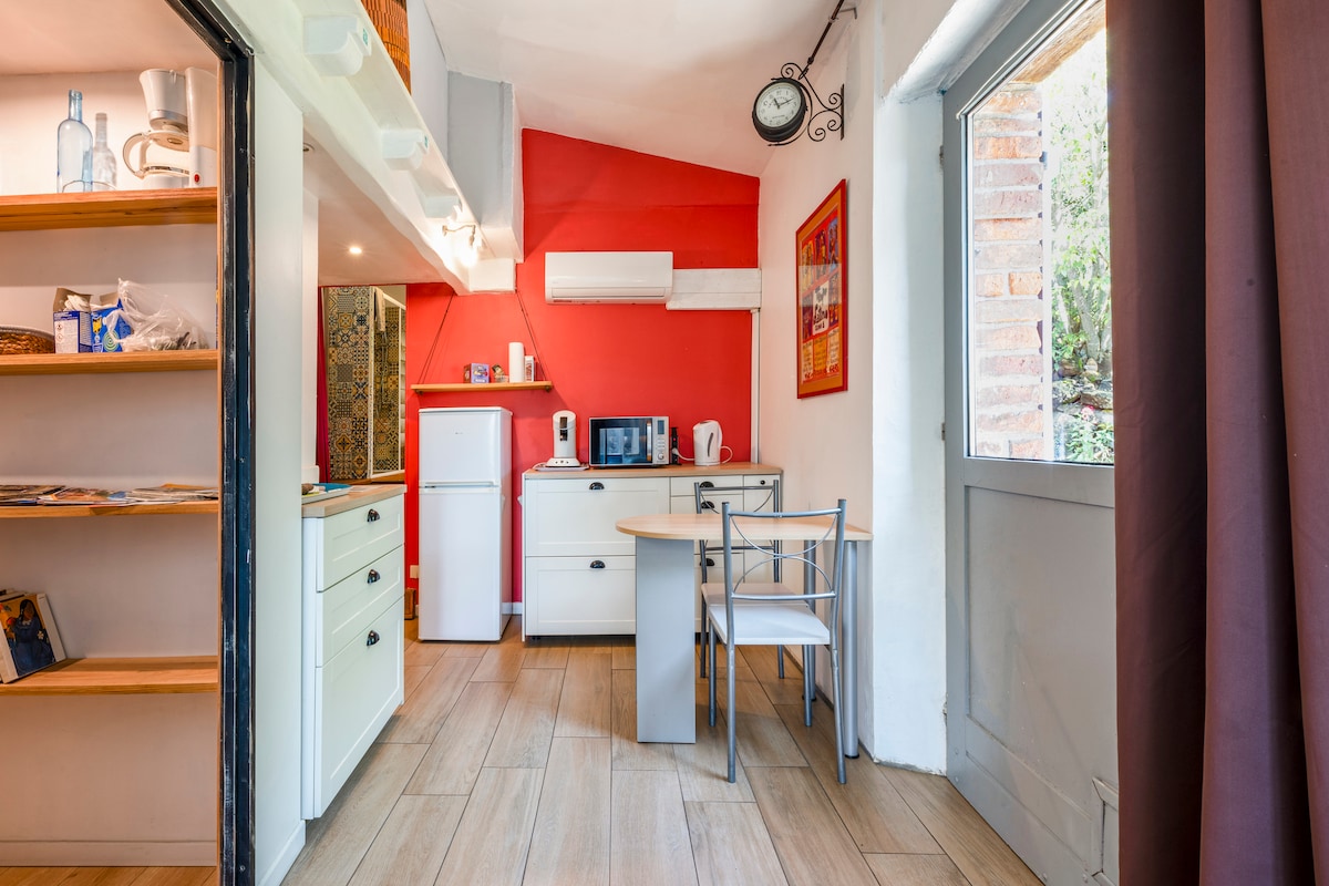 Vaš udoban odmor vas čeka u Sen Andre de Kruzjeru u ovom luksuznom apartmanu. Ovaj predivan prostor ima 1 spavaću sobu sa luksuznim bračnim krevetom, moderno kupatilo sa italijanskim tušem, potpuno opremljenu kuhinju i osnovne sadržaje kao što su klima-uređaj i grejanje, bademantili, mašina za pranje veša i trpezarija. Hektar vrta je vaš da lutate, razbacanim borovima kišobrana, čempresom i maslinama. Možete da plutate u bazenu (12x6) ili da se poslužite pićem iz bara u kućici pored bazena.