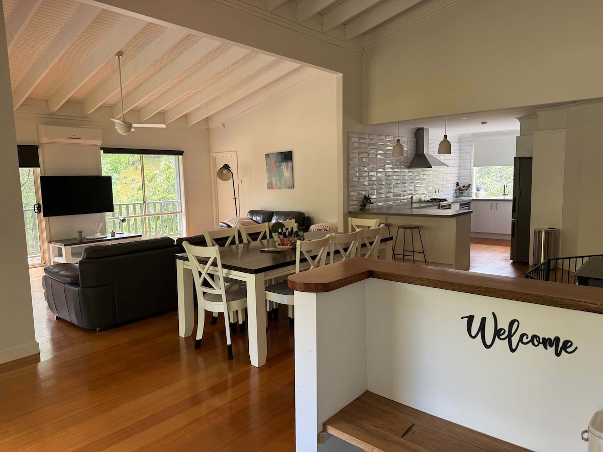 "Callignee Eco Bushhouse" is a sustainable, 100% off grid stand alone home nestled amongst 5 secluded acres of native bushland in the glorious Gippsland region. Architecturally designed, award-winning retreat featured on Grand Designs Australia. The space Callignee Eco Bushhouse operates on eco-friendly living principles and is 100% off grid, collecting its own electricity and water. **NEW- Now offering in-house massages and spa treatments. Enquire within for more information.
