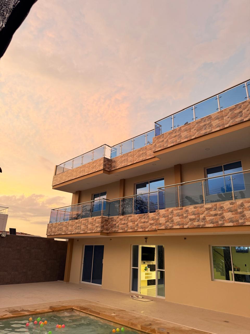 Cabaña en Santa Marta, ubicada en el barrio Bello Sol, sector Bello Horizonte a 500 m del mar. Tiene capacidad máxima para 24 personas. Si son más de 16 personas debe enviar la solicitud de reserva confirmando con la cantidad total de huéspedes para conocer la tarifa a pagar. La cabaña cuenta con: 5 Habitaciones con aire acondicionado 5 baños internos en cada habitación 2 baños sociales Cocina equipada Sala - Comedor Piscina Pérgola con zona de estar BBQ Parqueadero Wifi Sonido