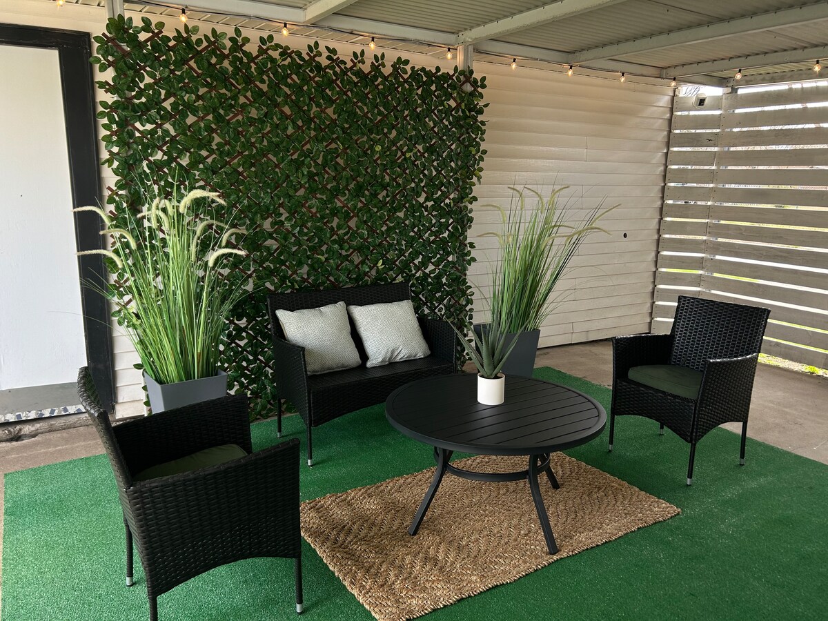 Escape to our charming three-bedroom, one-bathroom home in Houston, perfect for family vacation, group getaway, or business trip! Sleeps up to 8 with: -3 spacious queen bedrooms -1 confortable sofabed in the livingroom Amenities: -Fully equipped kitchen -Cozy living room for relaxation -Dining room with coffee station and mini fridge - Washer and dryer for convenience -Inviting outdoor patio for unwinding