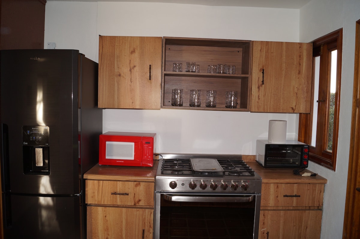 Es una cabaña de construcción ecológica ideal para parejas, o una familia, tiene jardín, en su interior encuentras la acogedora arquitectura de madera y adobe, descubrirás cómo todos los espacios fueron diseñados para descansar y disfrutar la convivencia, está ubicada en un típico barrio mexicano a 20min caminando de la plaza principal. A beautiful cabin made from ecological materials, it has a Garden, In the interior you will find how every space was design for resting