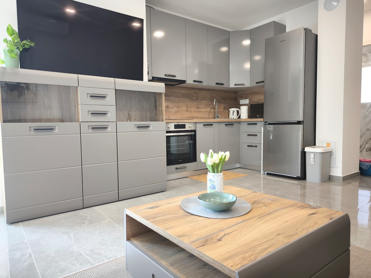 Otkrijte ovaj luksuzni stan u Puli, na samo 5 minuta vožnje od plaže i centra grada. Elegantan i moderan, ima dvije elegantne spavaće sobe savršene za udoban boravak. Cijeli prostor odiše sofisticiranošću sa visokokvalitetnim namještajem i savremenim dekorom. Uživajte u pogodnostima dva parking mjesta i vrhunskoj lokaciji u blizini svih sadržaja. Idealan za opuštajući odmor ili poslovno putovanje, ovaj stan besprekorno kombinuje udobnost i luksuz. Wi-Fi, klima-uređaj uključen !!