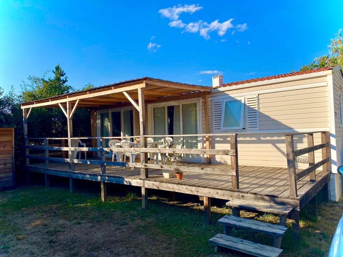🌞 Pobjegnite u udobnosti u srcu prirode – iznajmite svoju mobilnu kućicu odmah! 🌿 Želite da uživate u predivnoj prirodi bez odustajanja od udobnosti? Otkrijte našu potpuno opremljenu mobilnu kuću, smještenu u mirnom i zelenom okruženju, idealnu za opuštajuće trenutke sa porodicom, prijateljima ili ljubavnicima... ✔️ Opremljena kuhinja ✔️ Dnevni boravak sa TV-om ✔️ Moderno kupatilo ✔️ Drvena terasa ✔️ Klima-uređaj i grijanje 🎯 U blizini: Planinarenje, čuvano jezero udaljeno 2 km, rijeka na kraju kampa