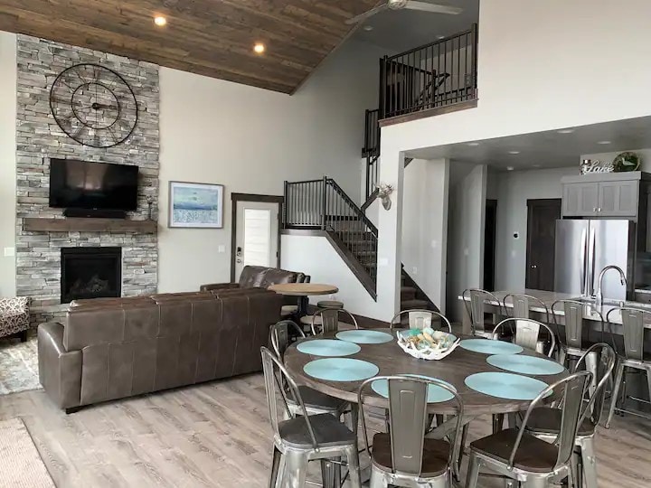 Welcome to The White House - a super-modern, single-level home featuring sweeping lake views, a private hot tub, cedar sauna, and arcade games! Your stay includes free access to Ideal Beach Resort, giving you private beach entry, pools, hot tubs, parks, and more. Explore ATV trails, take a short 15-minute drive to Beaver Mountain Ski Resort for prime sledding, snowmobiling, and skiing. Soak, explore, and unwind together—this modern home offers easy comfort and unforgettable moments for all.