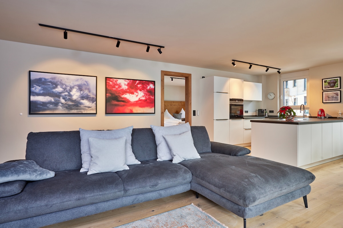 Moderan, novouređeni stan u istorijskoj kući sa ventilacionim bojama u centru Garmiša. Mirni balkon sa zapadnim suncem i pogledom na planine Kramer i Danijela. Deluxe krevet s oprugama + kauč (u dnevnom boravku), potpuno opremljena kuhinja (indukcioni šporet, rerna, mašina za pranje sudova, mikrotalasna pećnica), veliki trpezarijski sto za 4 osobe, moderno kupatilo sa tuš kabinom. Brzi Wi-Fi, pametni TV od 40inča, mašina za pranje i sušenje veša, pristup bez ključa. Barovi, restorani, kupovina, skijaški autobus, pješačke staze i parking u neposrednoj blizini