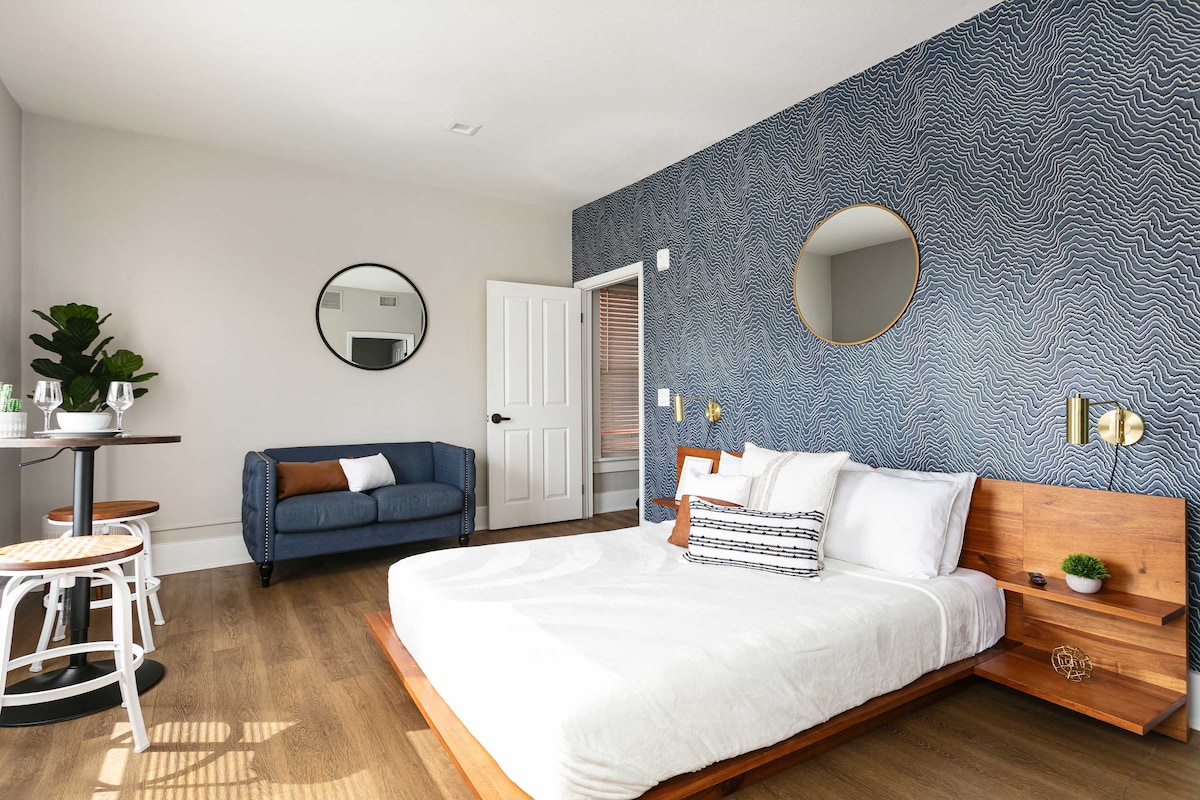 Explore all of San Diego’s beautiful downtown from this gorgeously restored historic hotel. Walk to everything … Gaslamp Quarter, Petco Park, Convention Center, world-class restaurants and lounges. … King Bed, with Queen Sofa Bed … Keyless entry … 42" Samsung Smart TV - Direct TV is included … Efficiency Kitchen / Kitchenette … Air conditioning … High ceilings, ceiling fan … Fast free WIFI … Professionally cleaned & managed