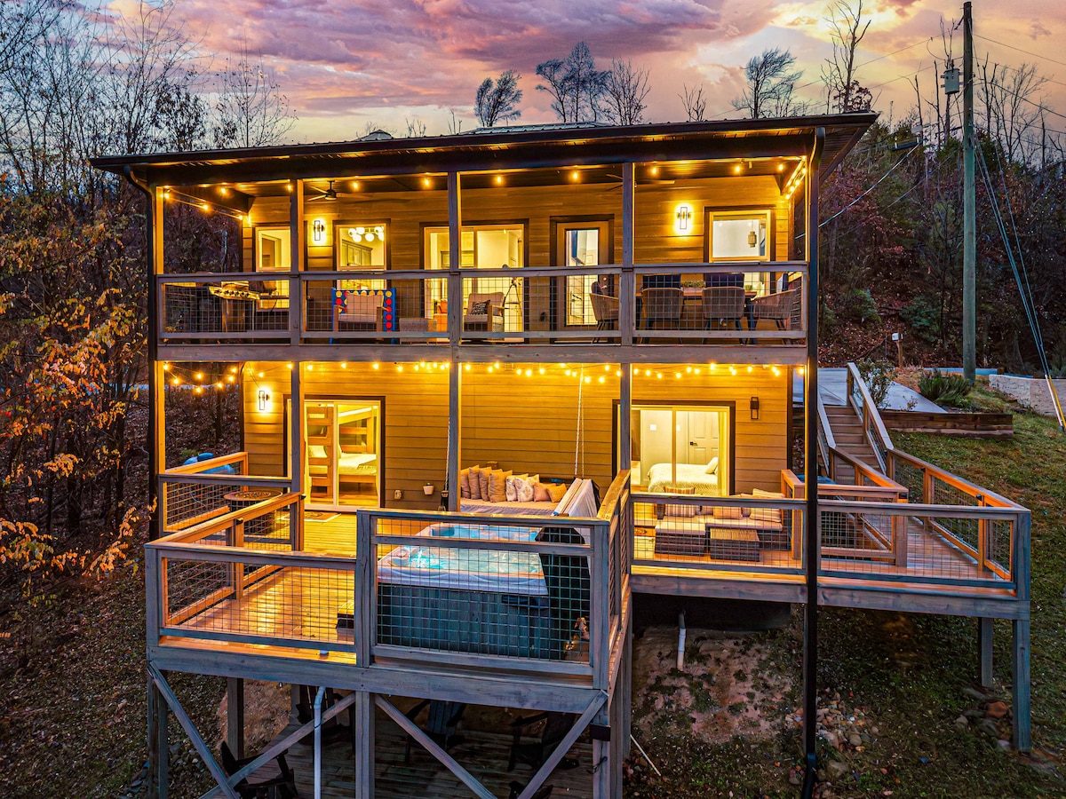 Perched on top a private 36-acre hilltop (the highest outside the Park!), Belltop is the perfect retreat. Enjoy our 2024 renovations! Brought to you by StayBham, creators of inspired retreats. Steam in the spacious steam room. Enjoy sunrise yoga in the loft. Soak in the hot tub overlooking the valley. Play vintage video games. Listen to a record or play the piano. Watch the sunset while you sit by the fire. Minutes from the Wears Valley entrance to the Smoky Mountains.