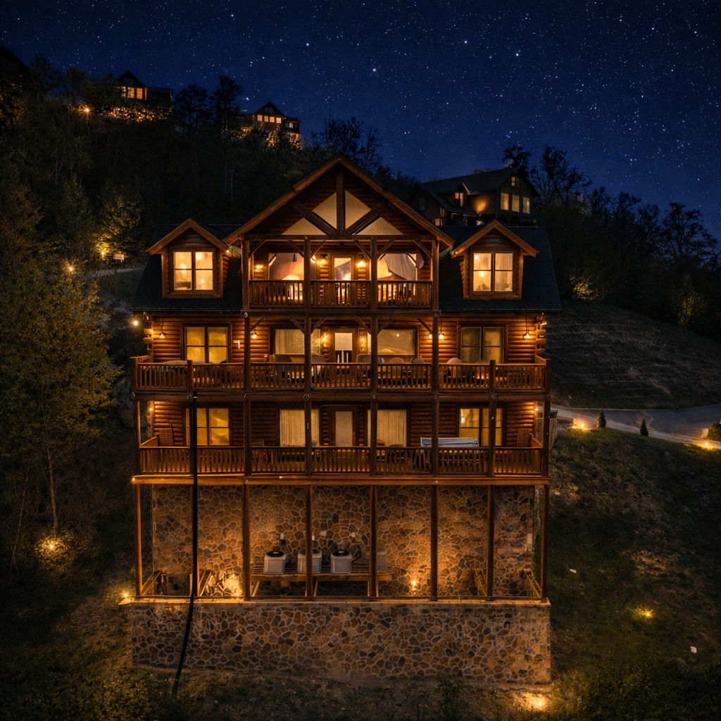 Ova potpuno nova brvnara je završena u avgustu 2022. godine i nalazi se na poželjnoj lokaciji Chalet Village North. Ovo mjesto omogućava pristup klubovima koji uključuju vanjske bazene, teniske terene i mnoge druge sadržaje. Unutra ima 5 spavaćih soba sa zasebnim apartmanima, privatnom hidromasažnom kadom i igraonicom. Terase na svakom spratu omogućavaju neometan pogled na planine. Nalazi se na samo nekoliko minuta od centra Gatlinburga, nacionalnog parka i kratke vožnje do Pigeon Forgea, ovo je nezaobilazan boravak!