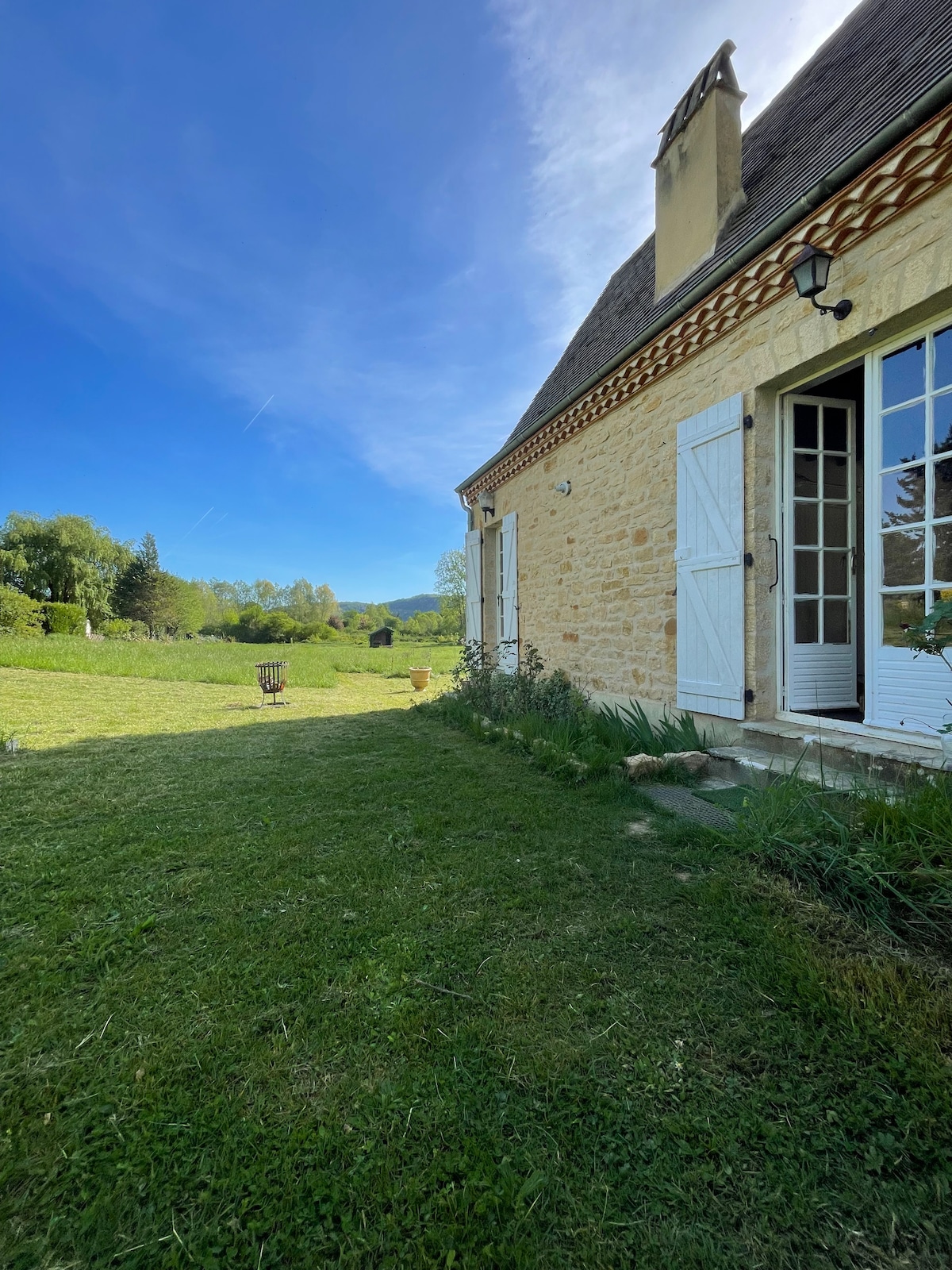 Located 6 km south of Sarlat, La Prade sits at the foot of Beynac Castle and boasts a splendid, unobstructed view. Built in the heart of a large, verdant meadow bordered by two clear streams, this house of golden stone offers peace, coolness, and an environment surrounded by nature. Ideally situated in the heart of the Périgord Noir region, it invites you to a rejuvenating stay filled with charm and serenity.