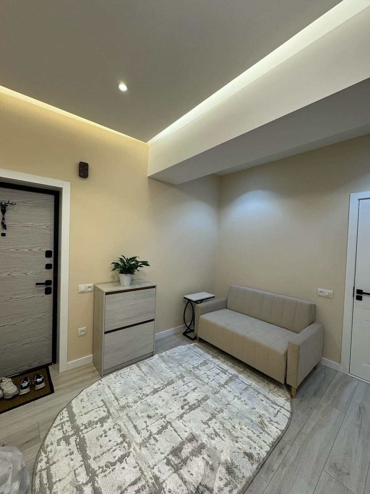 Moderan dizajnerski stan u novom stambenom kompleksu u Taškentu! Savršena lokacija sa mnogo kafića, restorana i supermarketa, ali istovremeno, stanovi se nalaze u ograđenom stambenom kompleksu sa danonoćnom bezbednošću zbog vaše bezbednosti. Ovde možete da pronađete sve što vam je potrebno za udoban boravak. Nalazi se na 1. spratu.