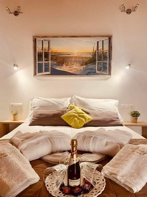 Bask by the Beach in a Chic Apartment Overlooking the Sea. Enjoy breathtaking sunsets from this modern apartment just steps away from Ammoudara beach. Start your day with a swim or relax on the balcony with a sea view. Traditional Cretan lace and artwork add a touch of folklore to the stylish interior. The house is fully equipped with everything you need, including a kitchen and modern amenities like Wi-Fi, air conditioning, and a TV. Take a short drive og 10 minutes to Heraklion city center.
