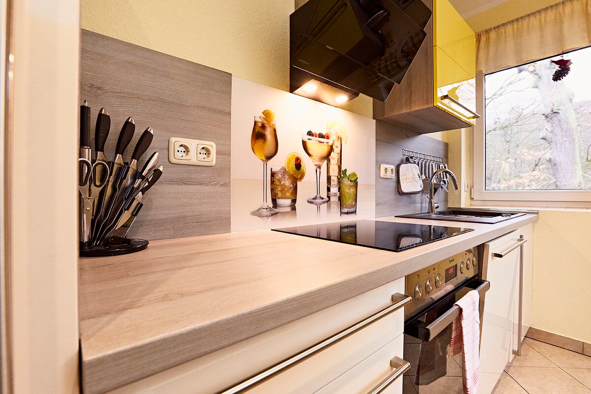Das Apartment befindet sich in unmittelbarer Nähe zum Schloss und liegt mitten im historischen Zentrum von Weimar. Die Wohnung verfügt über eine komplett eingerichtete, moderne Einbauküche. Das Bad mit Badewanne und die große Sonnenterrasse laden zum Verweilen und Entspannen ein. Zahlreiche Restaurants und Verpflegungsmöglichkeiten befinden sich in unmittelbarer Nähe. Der Zugang zum Apartment erfolgt eigenständig über einen Schlüsselkasten. Gern sind wir auch persönlich für Euch vor Ort.