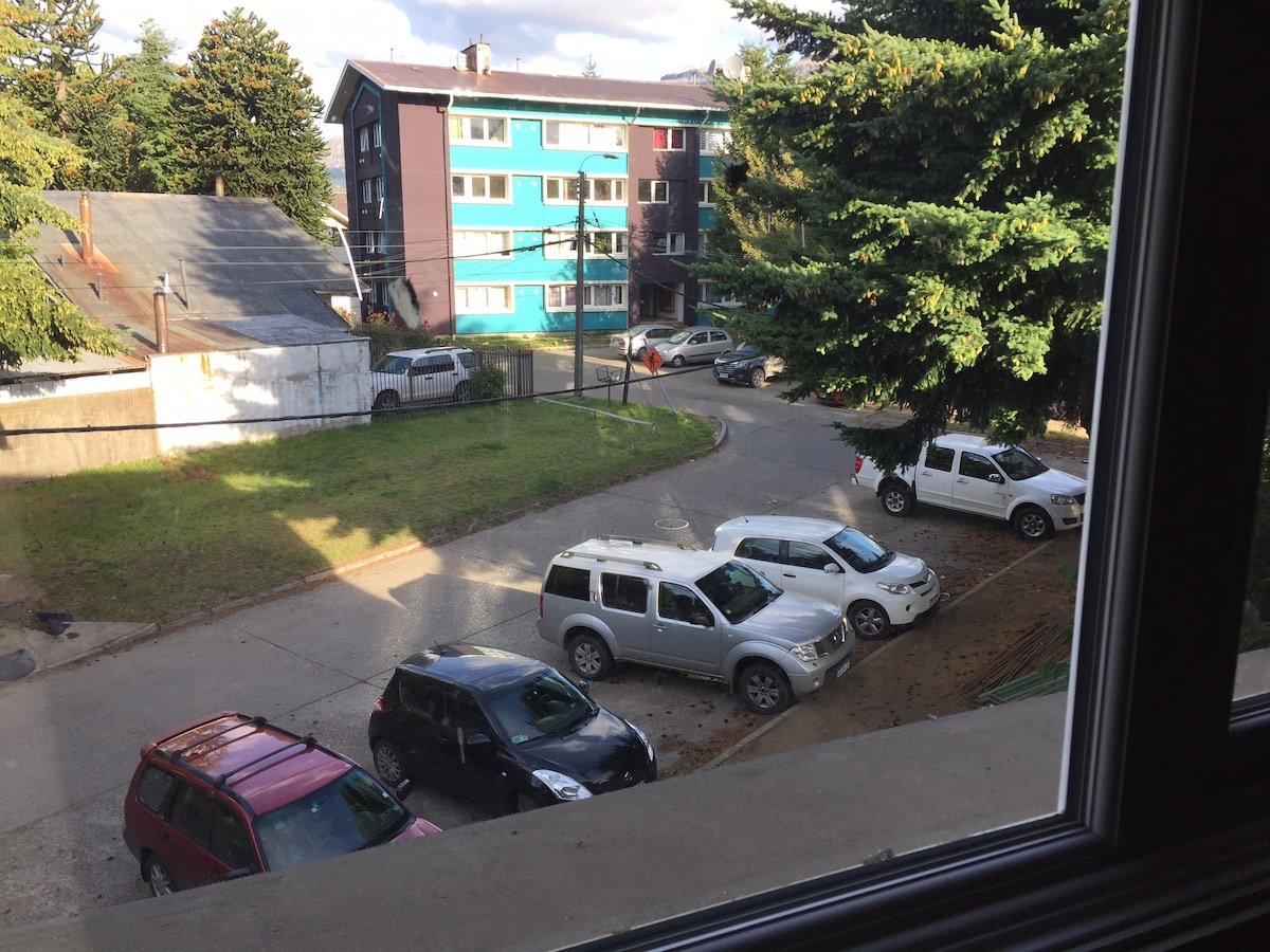 Departamento nuevo, donde podrás disfrutar tu estadía ya sea solo o en familia, 1 baño, dos habitaciones, una matrimonial y otra doble con camas nuevas y cómodas. El living comedor cuenta con un balcón y una maravillosa vista hacia el cerro cinchao y Divisadero. También ofrece una logia con lavadora - secadora y todo lo necesario para que puedas lavar tus pertenencias. Televisión, internet, microondas, refrigerador, cocina a gas, hervidor, calefacción eléctrica(todo nuevo) y estacionamiento.