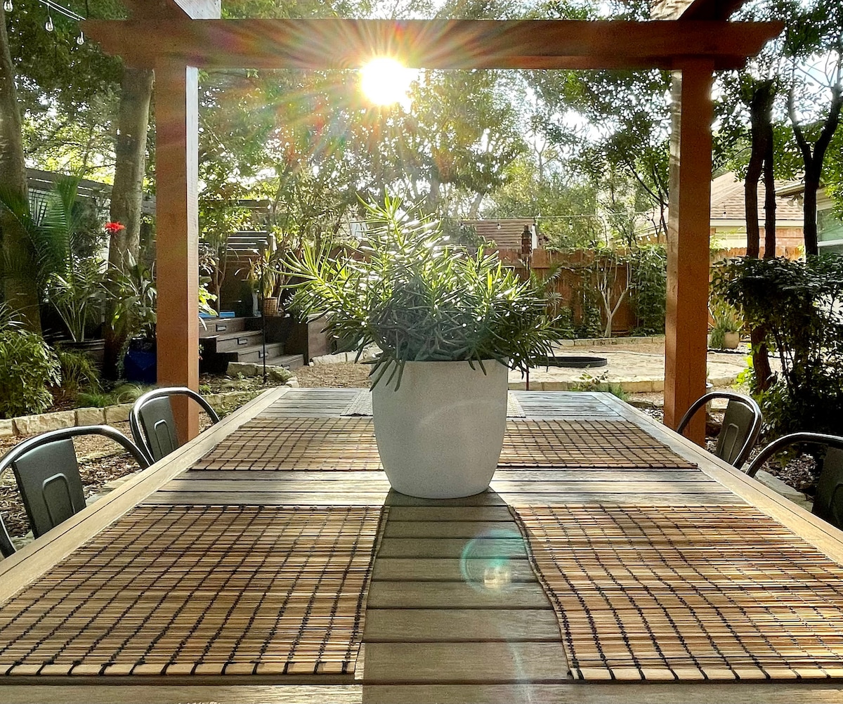 Omiljeni Airbnb gost u Ostinu! Moderna udobnost i jedinstven stil, ovo utočište je savršeno utočište za opuštanje i istraživanje Ostina. Posebnosti: • Prikladno za kućne ljubimce: veliko, ograđeno dvorište • Bunar za odmor: novi dušeci i posteljina • Profesionalna kuhinja: Potpuno opremljena! • Život na otvorenom: natkriveno unutrašnje dvorište • Prikladno za poslovna putovanja: brzi 1 GB svjetlovodni internet •Priroda: kilometri bezbjednih staza > 5 minuta udaljenosti •Najbolja lokacija: najbolje atrakcije u blizini •Čisto i bezbjedno: besprekorna čistoća u mirnom dijelu grada