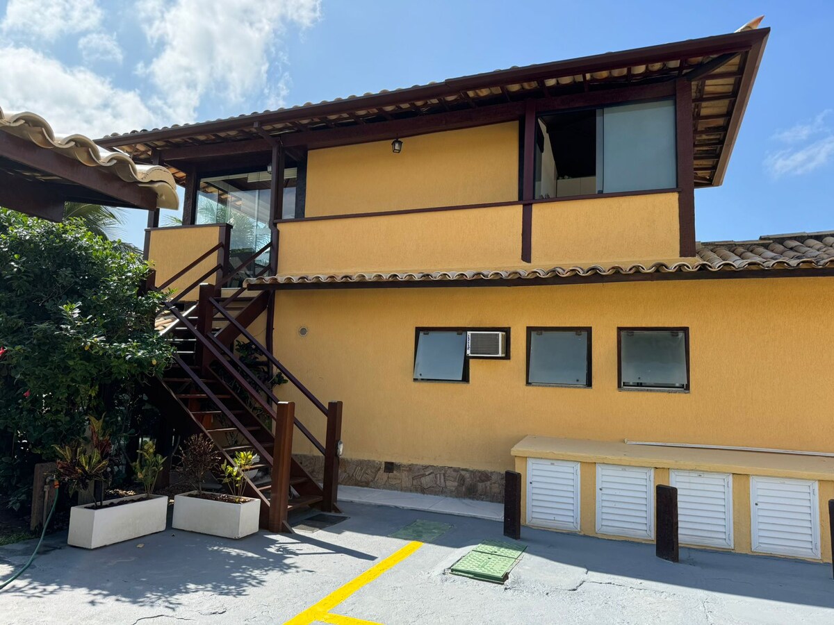Udoban prostor, rustikalan, ali udoban sa podijeljenim klima-uređajem, sa baštom, grijanim zidanim bazenom sa hidromasažom, saunom, roštiljem, 100 m od plaže Geriba. Možete da radite od kuće zahvaljujući brzom Wi-Fi mreži (200 MBPS). 2 nova TV-a (2 boda) sa preko 100 kanala. Noću iskoristite priliku da prošetate ulicom Rua das Pedras ili u gastronomskom centru Porto da Barra u Manguinhosu, odete u dobre restorane, popijete piće...