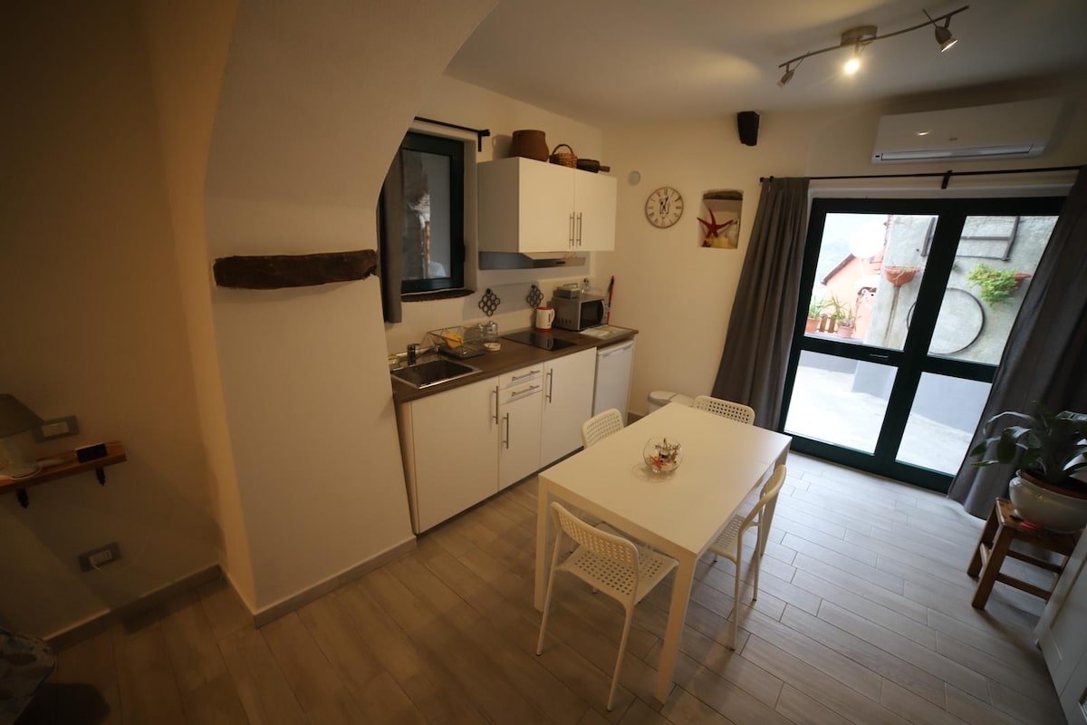 Svijetli i udobni stan, potpuno nov, sa ogromnom terasom sa pogledom i divnom malom baštom sa đakuzijem. 2 udobne uređene spavaće sobe, sa privatnim kupatilom, dnevnim boravkom sa potpuno opremljenom kuhinjom i kaučem koji može da postane udoban bračni krevet. Wi-Fi, klima-uređaj, Smart TV i besplatne toaletne potrepštine. Mirno i tiho mjesto, na jednoj od najspektakularnijih lokacija Riomaggiorea i samo 5 minuta hoda od centra grada.