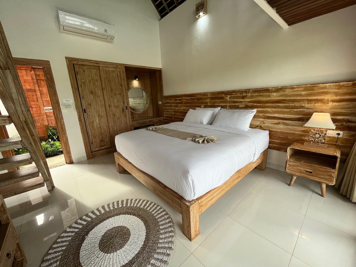 Kamar pribadi yang nyaman dan lapang yang memiliki design unik semi-modern dengan berbagai fasilitas lengkap didalamnya seperti Dapur pribadi, meja makan yang dipadukan dengan sedikit ruang terbuka , toilet (indoor)yang terpisah dengan bathub (outdoor) serta Kursi sofa untuk bersantai. Kamar ini terletak dalam satu area penginapan dengan 5 bangunan lain sekitarnya dimana memiliki pool, lobby, laundry dan komunal area yang digunakan bersama.
